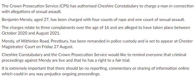 Rob Harris On Twitter Benjamin Mendy Charged With Four Counts Of Rape And One Count Of Sexual Assault Police Statement